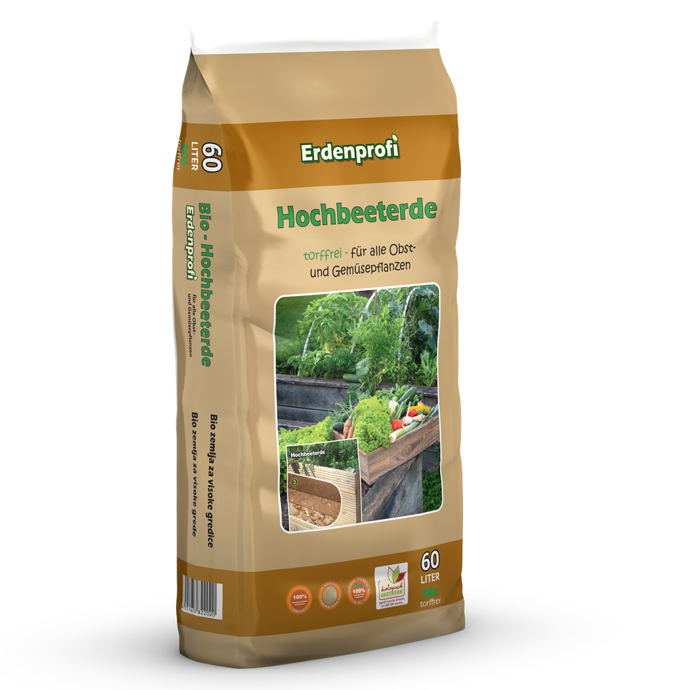 Speziell geeignet für Hochbeete, große Pflanztröge oder Kübel auf Balkon und Terrasse. Erhältlich in praktischen 60-Liter-Säcken für das einfache Befüllen von Hochbeeten.